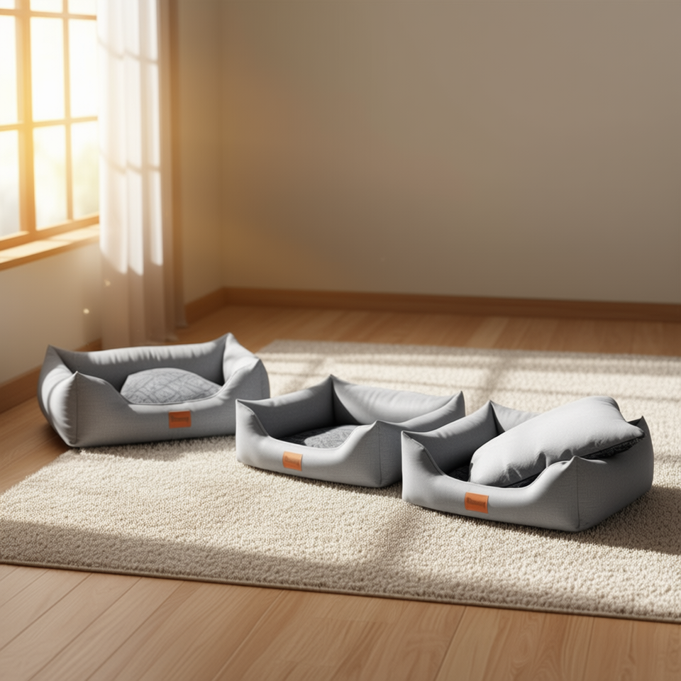 Three-Piece Set of Fine Linen and Embossed Flannel Dog House in Gray for Your Furry Friend's Comfortable Pet Bed