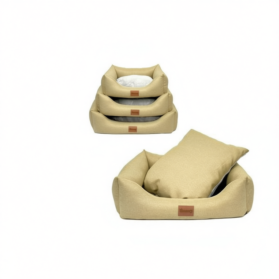Three-Piece Set of Yellow Linen and Embossed Flannel Dog House for Pet Beds