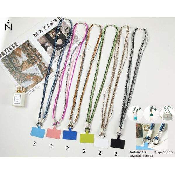 Cordino in cotone a tre fili da 120 cm, multicolore, per telefono, borsa da lavoro, porta badge e cellulare