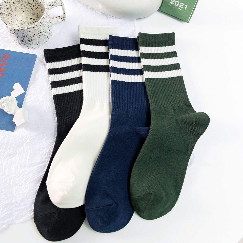 Studenti universitari giapponesi coreani a tre strisce che praticano lo skateboard in bianco e nero su calzino di tendenza