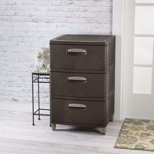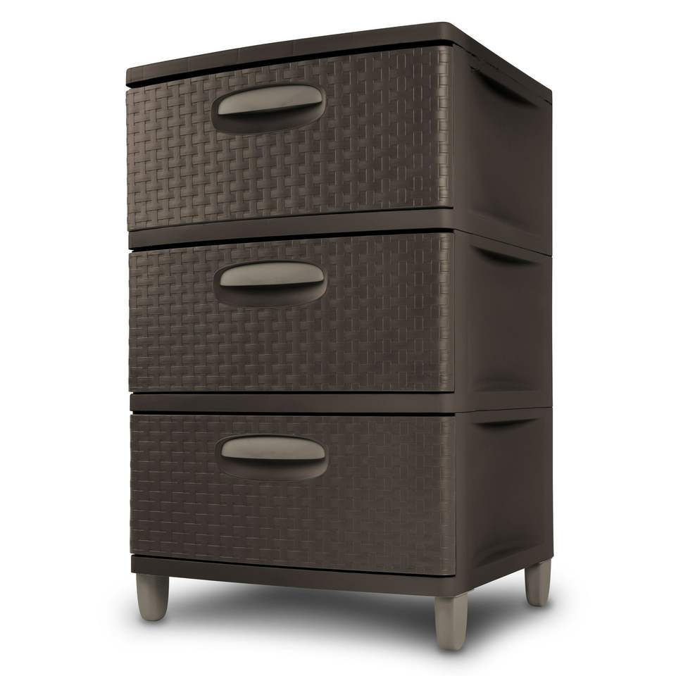 Cassettiera a tre cesti intrecciati con gambe portanti