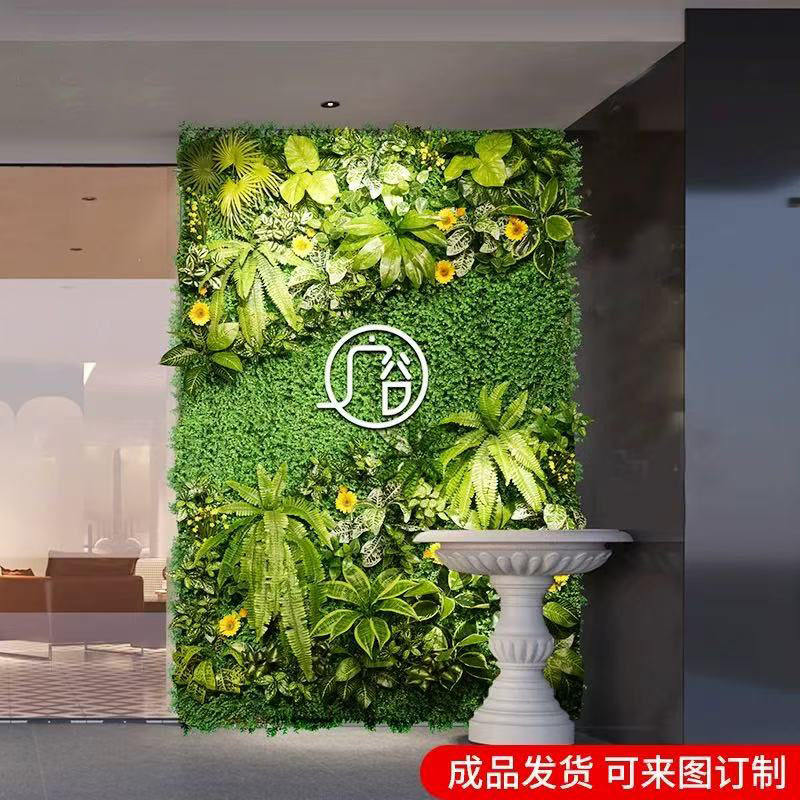 Three-dimensional Artificial Biomimetic Grass Walls Plant Walls Background with Landscape Combination of Artificial Flowers
