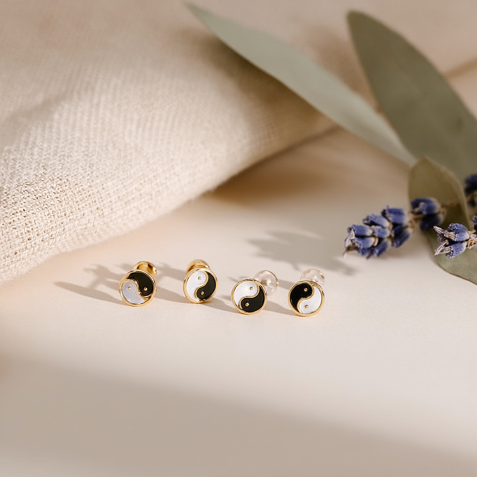Tianxi Bagua Stud Earrings Stainless Steel 6mm Gold Plated Classic Unisex Fashion Jewelry