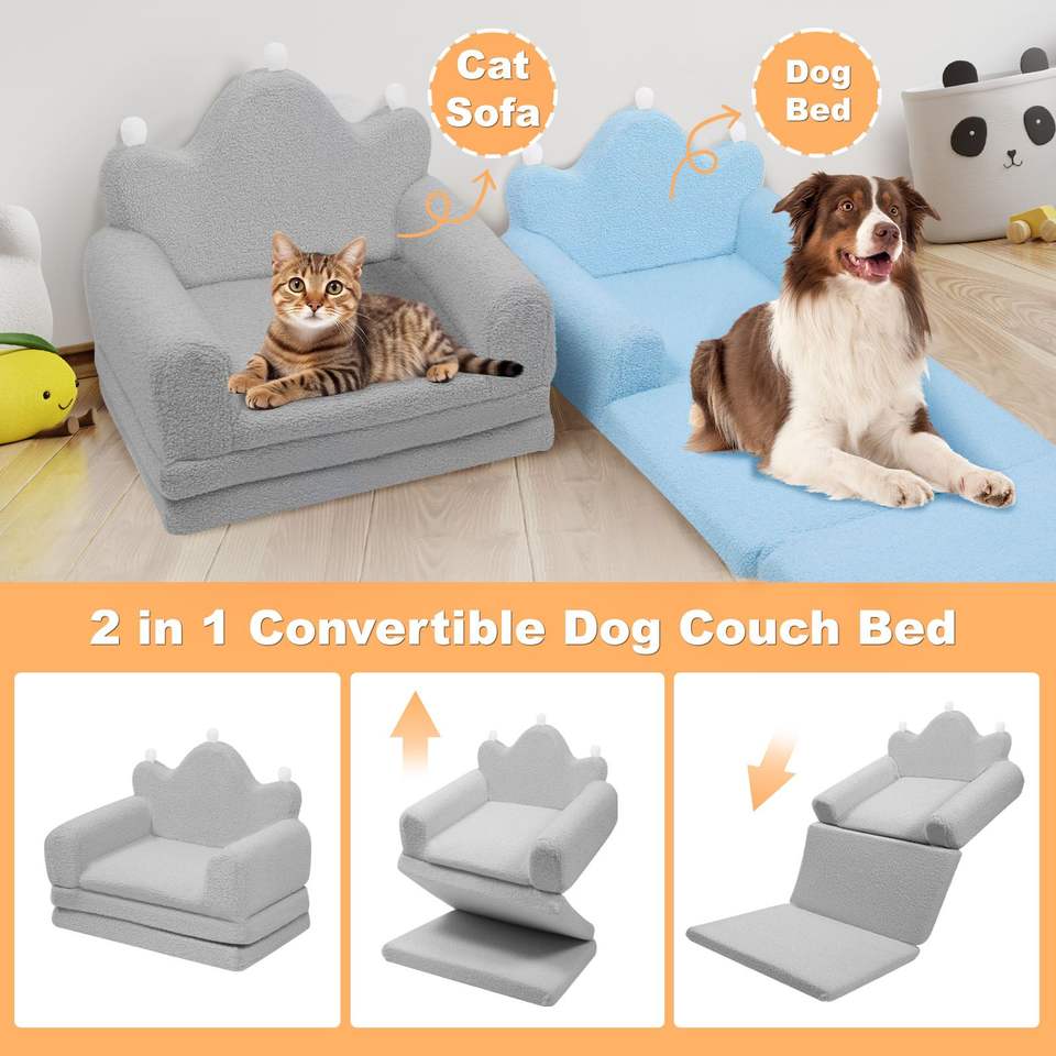Cuccia e Divano Convertibile per Cani a Forma di Tiara 58x48x40 cm, Lussuoso Cuscino in Peluche 2-in-1 Lavabile in Lavatrice