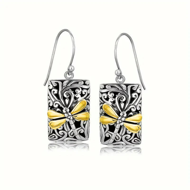Tibetan Silver Drop Earrings Women's Vintage Insect Design 18K Gold Plated Two-tone Alloy Fashion Jewelry Gift