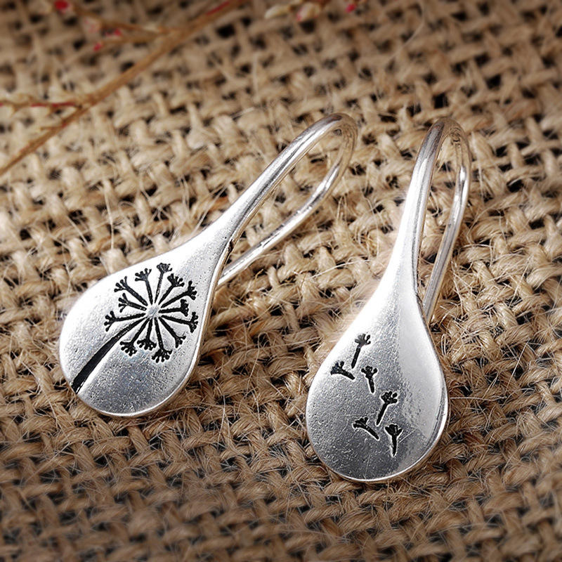 Tibetan Silver Drop Earrings Women's Vintage Plant Pattern Alloy Earrings Antique Silver Plated Fashion Dangle Jewelry