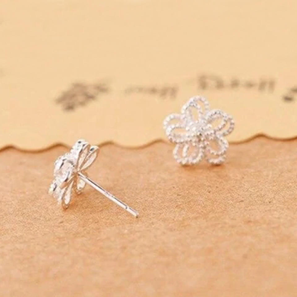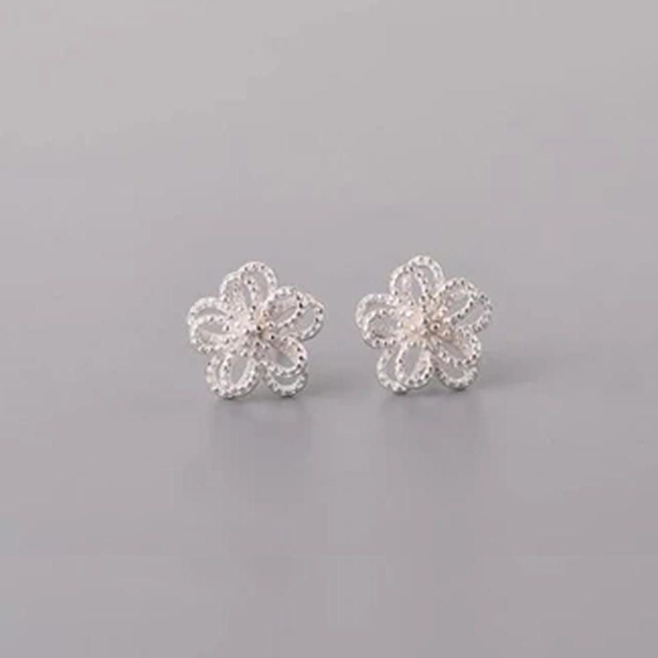 Tibetan Silver Flower Stud Earrings Classic Alloy Jewelry For Unisex White Gold Plated Fashion Earrings