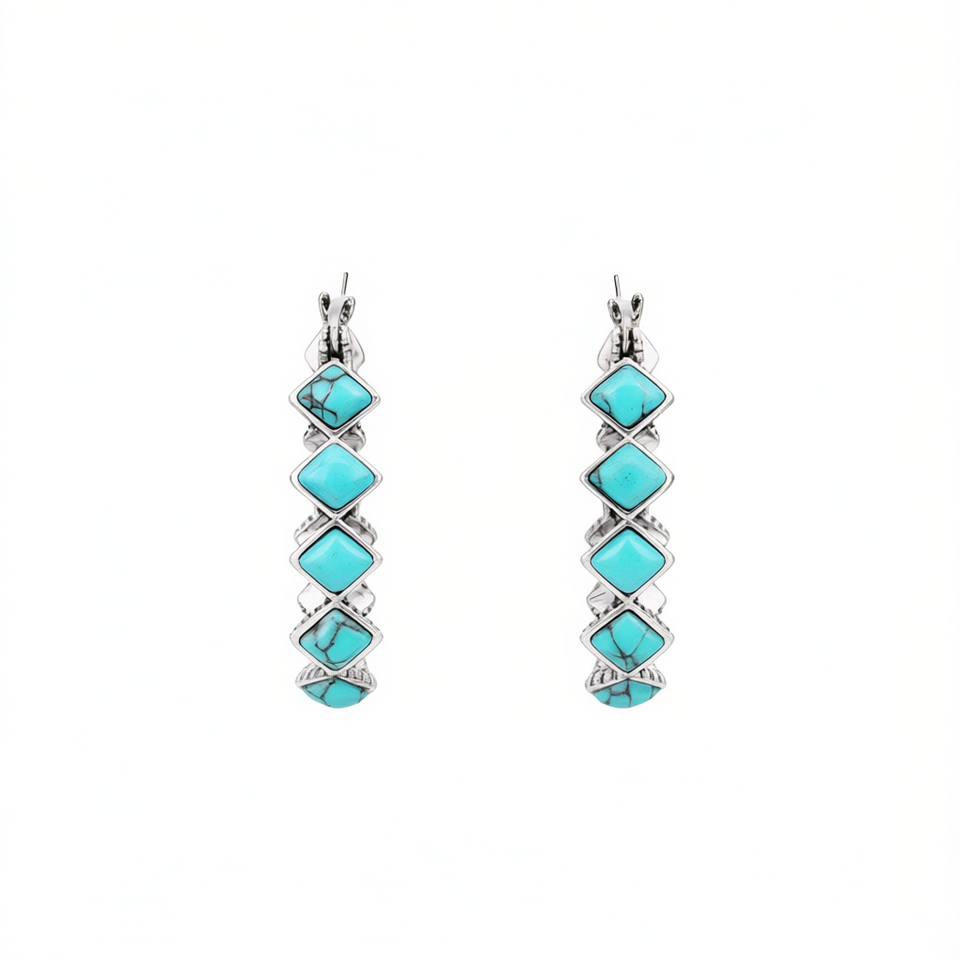 Orecchini Pendenti in Argento Tibetano con Turchese, Montatura Geometrica, Stile Bohémien, Gioielli da Donna alla Moda, Placcati in Argento Anticato
