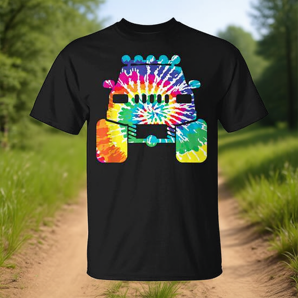 T-Shirt Unisex per Adulti con Stampa Monster Truck 4x4 Tie Dye, Collo Rotondo, Manica Corta, Design Promozionale