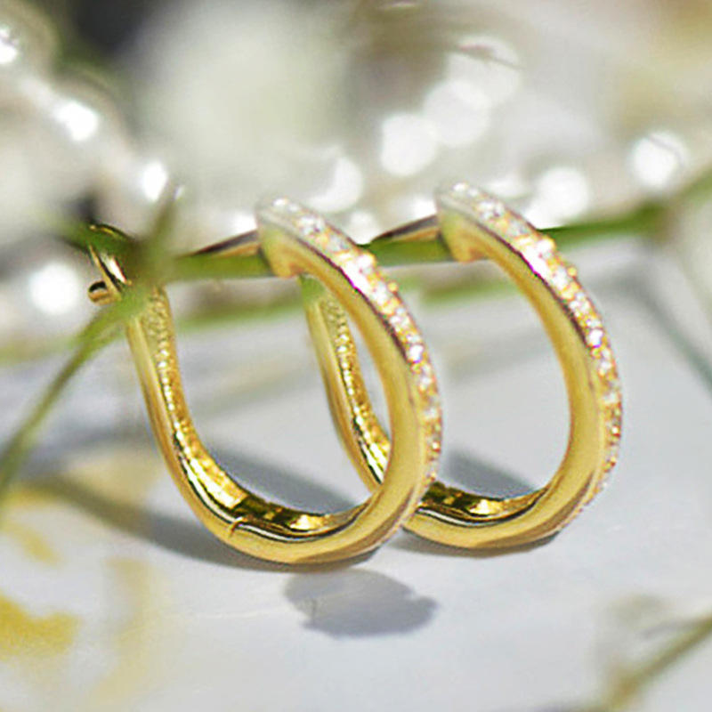 Tiffany & Co. Diamond Hoop Earrings 18K Gold Round Brilliant Cut G Color Natural Diamonds Women's Classic Everyday Wear
