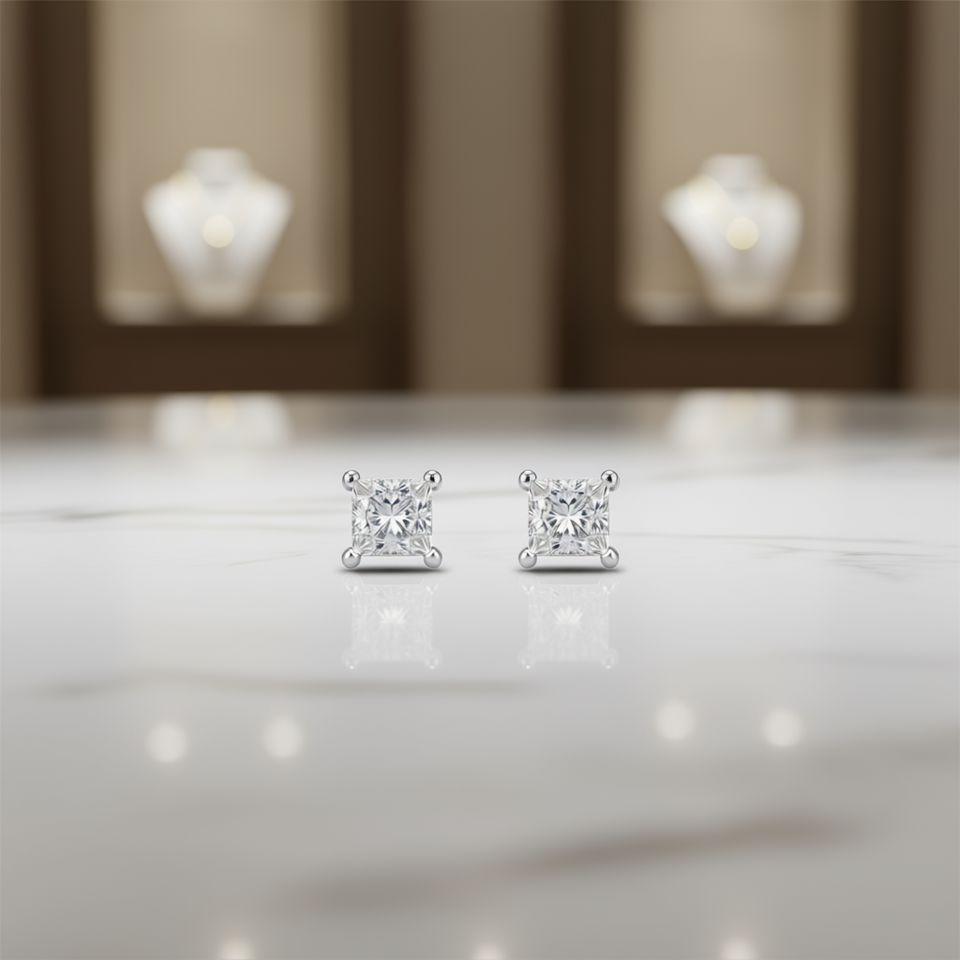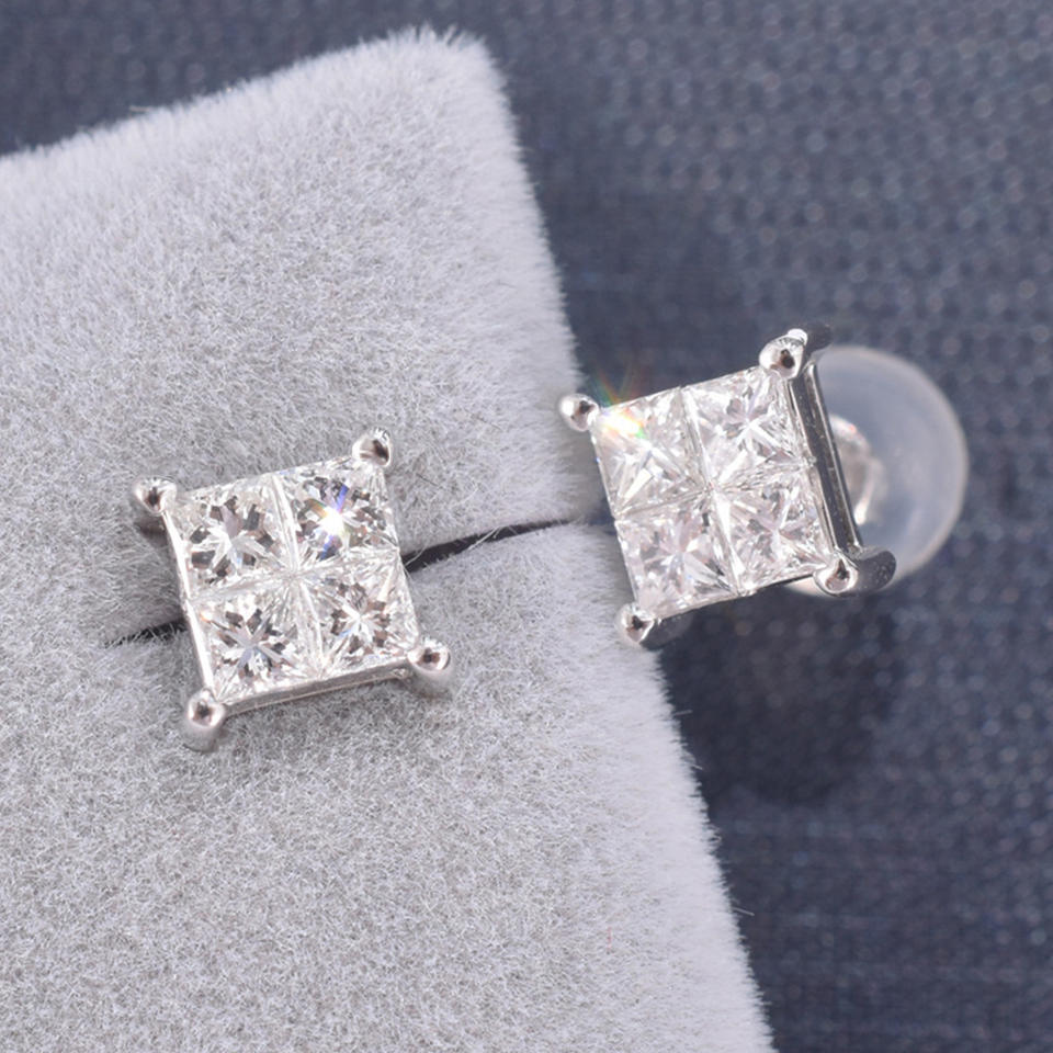 Tiffany & Co. Princess Cut Diamond Earrings 1.0 Ct White Gold GIA Certified Engagement Women's Classic Style