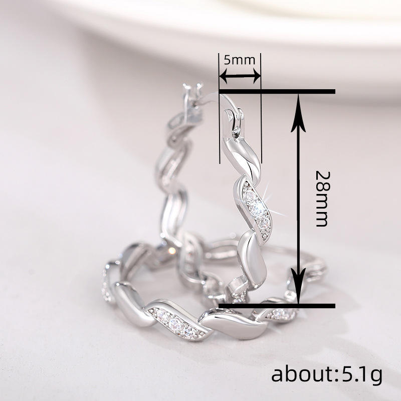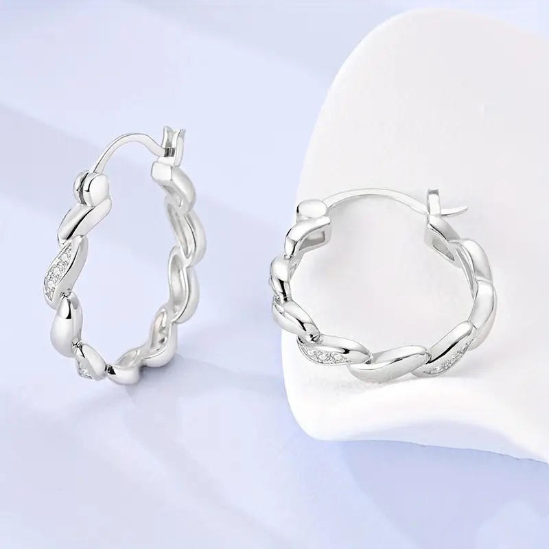 Tiffany & Co. Silver Hoop Earrings White Gold Plated Round Crystal Channel Setting Classic Women's Everyday Wear