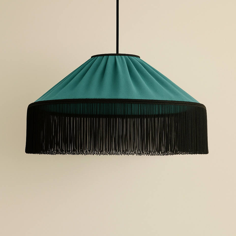 Tiffany Color Fantasy Handmade Lamp shade with Black Fringes, Pendant Light.
