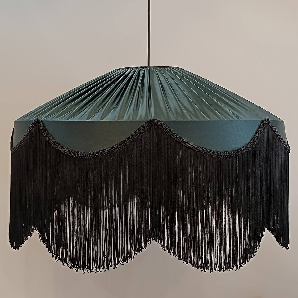 Tiffany Green treetop silky wavy handmade lamp shade, pendant light.