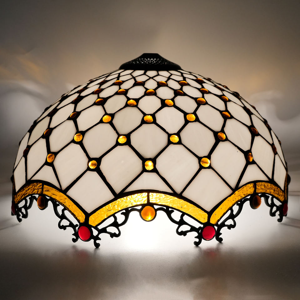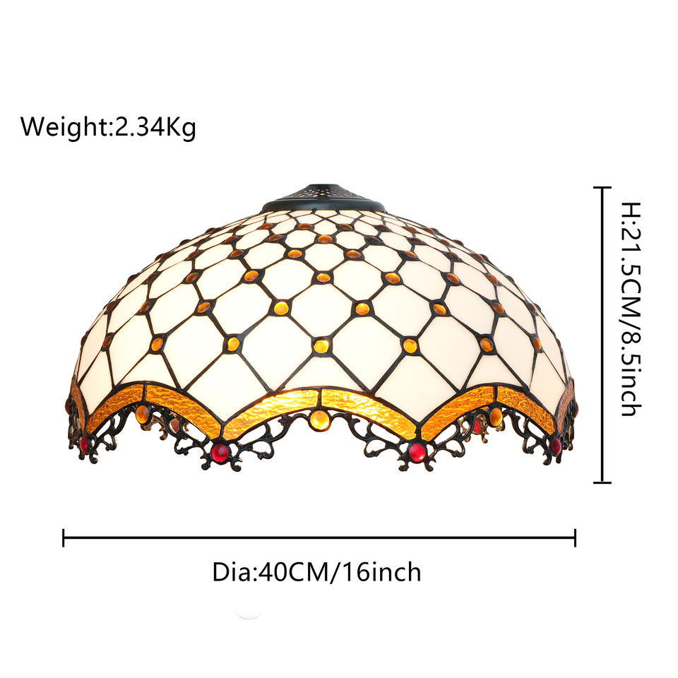 Paralume Tiffany di Ricambio 16 Pollici in Vetro Colorato Ambrato con Perline, Adatto per Lampade da Tavolo, Lampade da Terra, Lampade a Sospensione, Decorazione Casa