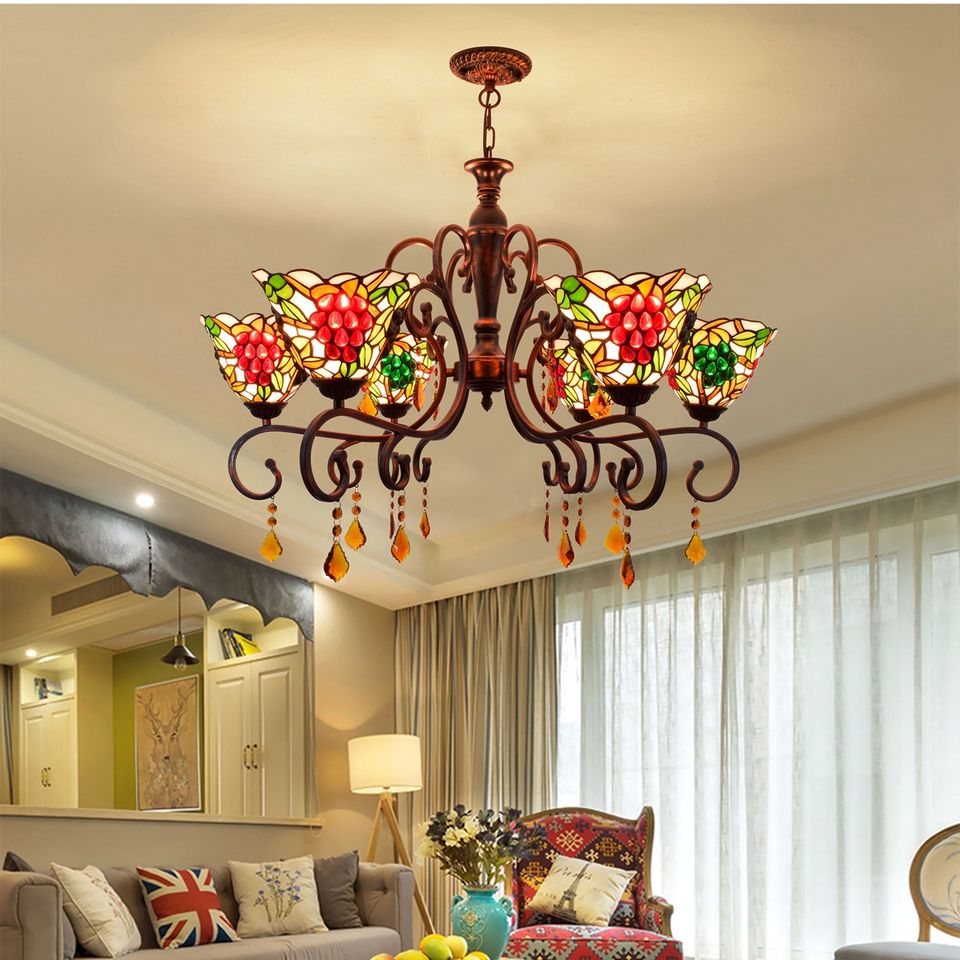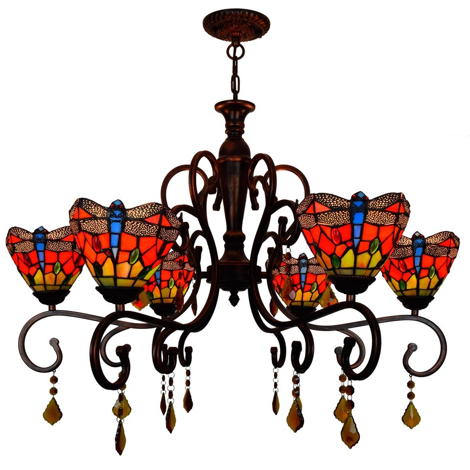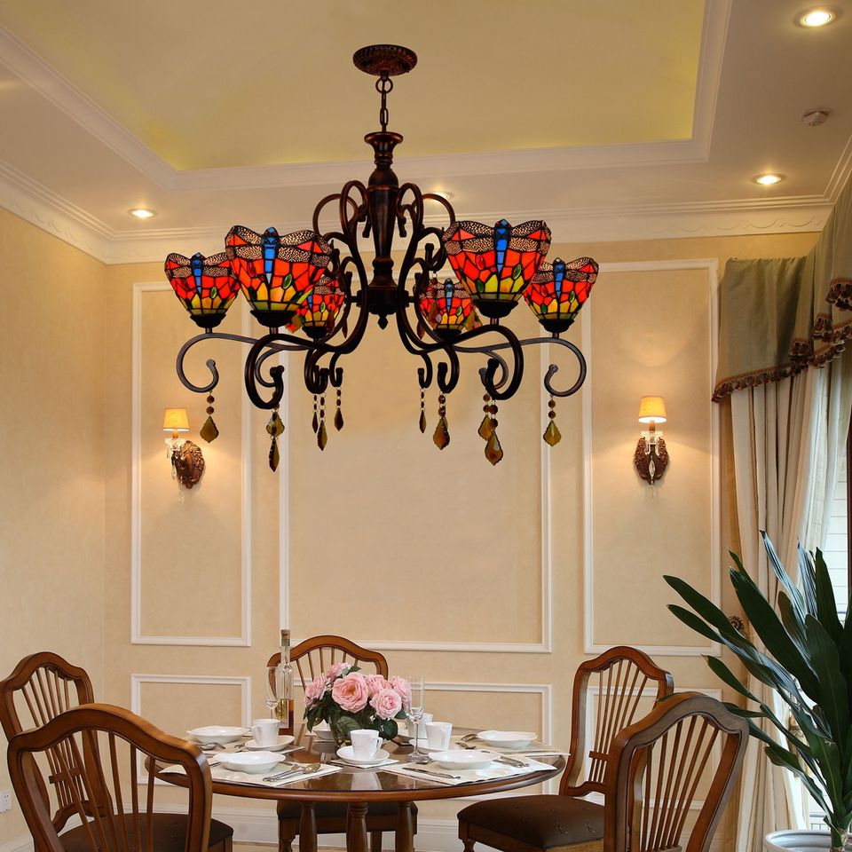 Tiffany di Vetro Colorato Libellula Rossa Barocco Retro Camera Da Letto di Cristallo Vintage Classic Sala da pranzo Ha Portato Lampadario