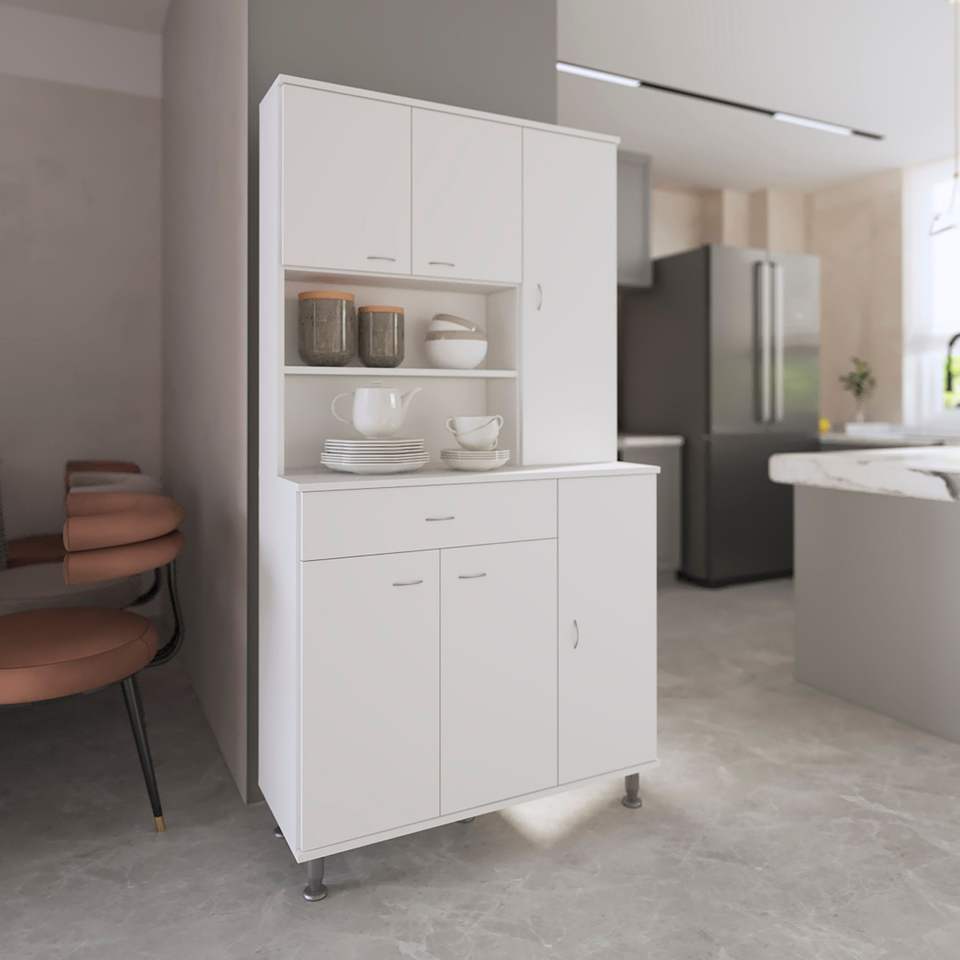 Armadio Dispensa Tigard Bianco con 1 Ripiano e 1 Cassetto per Uso in Cucina