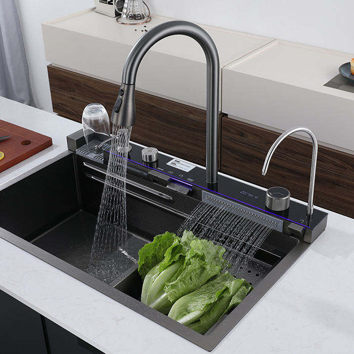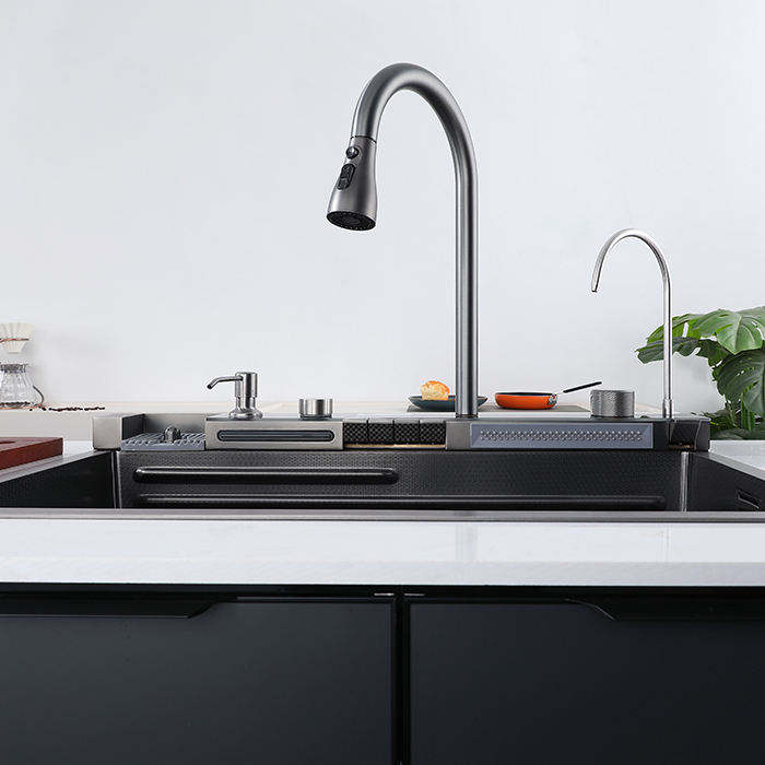 Tiktok popolare grande singolo Slot multifunzione lavello rubinetti estraibile rubinetto cucina pistola grigio lavello Set