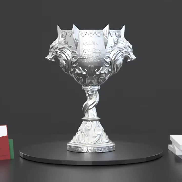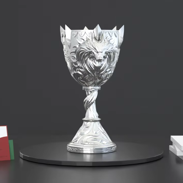 Trofeo del Vincitore delle Partite Competitive della Guild del Gioco Time Hunter, in Metallo Fuso, Placcato Oro/Argento, Design Personalizzato