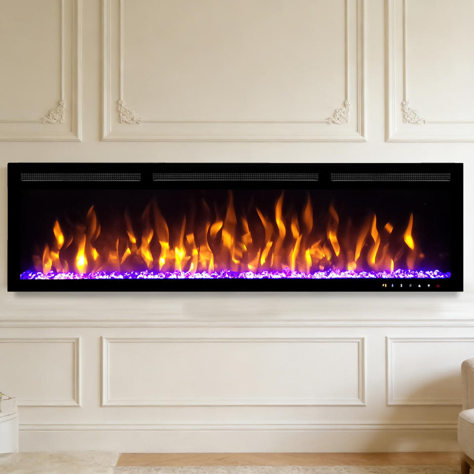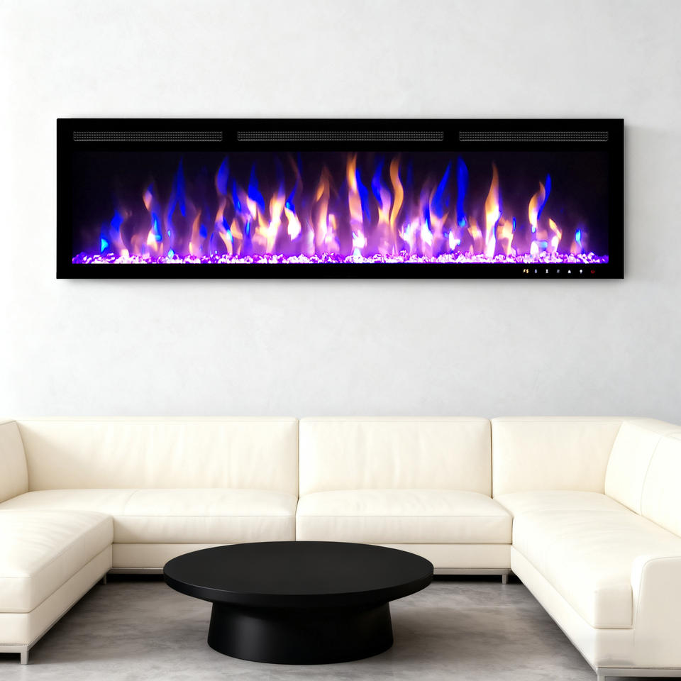 Caminetto Elettrico Lineare con Fiamma Multicolore e Telecomando per Arredamento Domestico