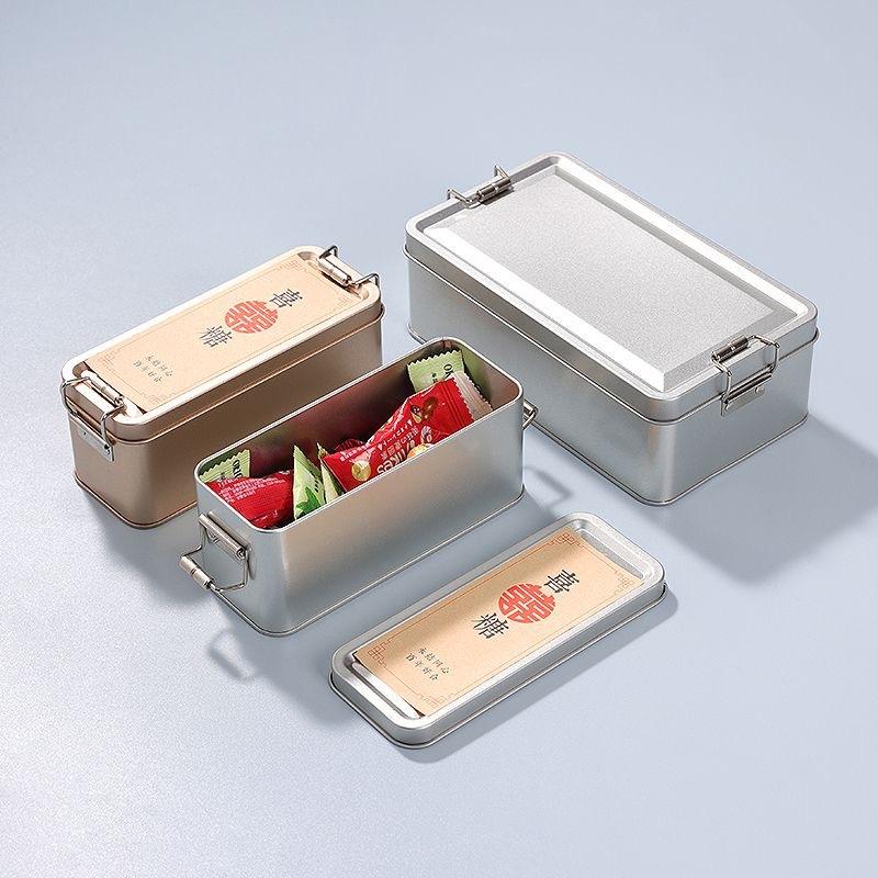 Scatole di Latta con Coperchio a Chiusura a Leva per Alimenti Lunch Box per Bambini Scatole per Torte e Biscotti Ingrosso Logo Personalizzato Metallo Vuoto