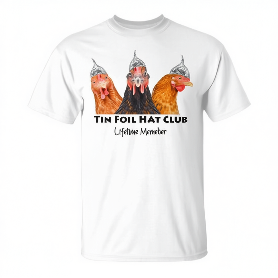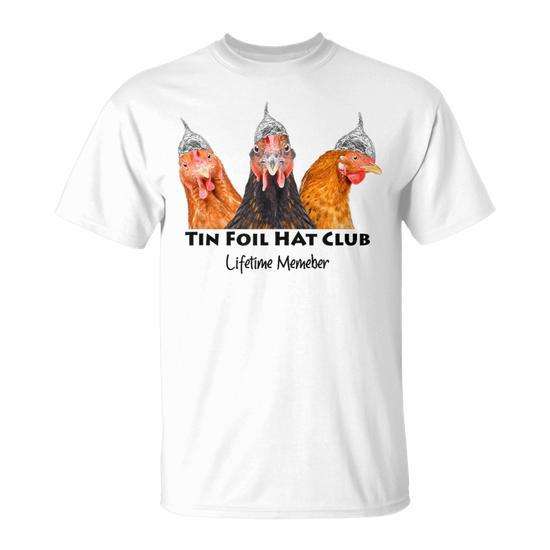 T-shirt Tin Foil Hat Club Chicken Conspiracy Theorist per adulti, unisex, manica corta, girocollo, stampa digitale
