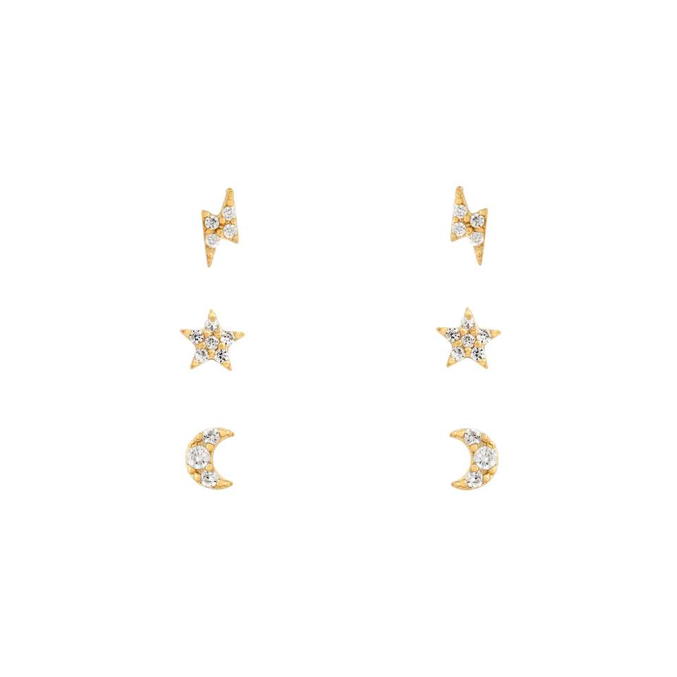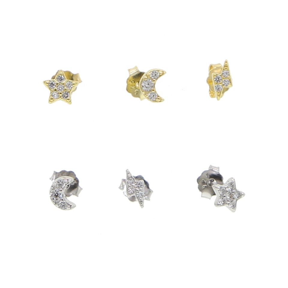 Tiny Minimal Stud 925 Sterling Silver Small lightning Moon Star Mini Second Stud Earring