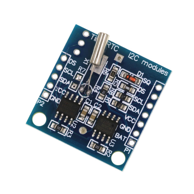 Modulo RTC I2C Compatto con Memoria 24C32 DS1307, Pin Header per Orologio, Dimensioni 28x27x8mm