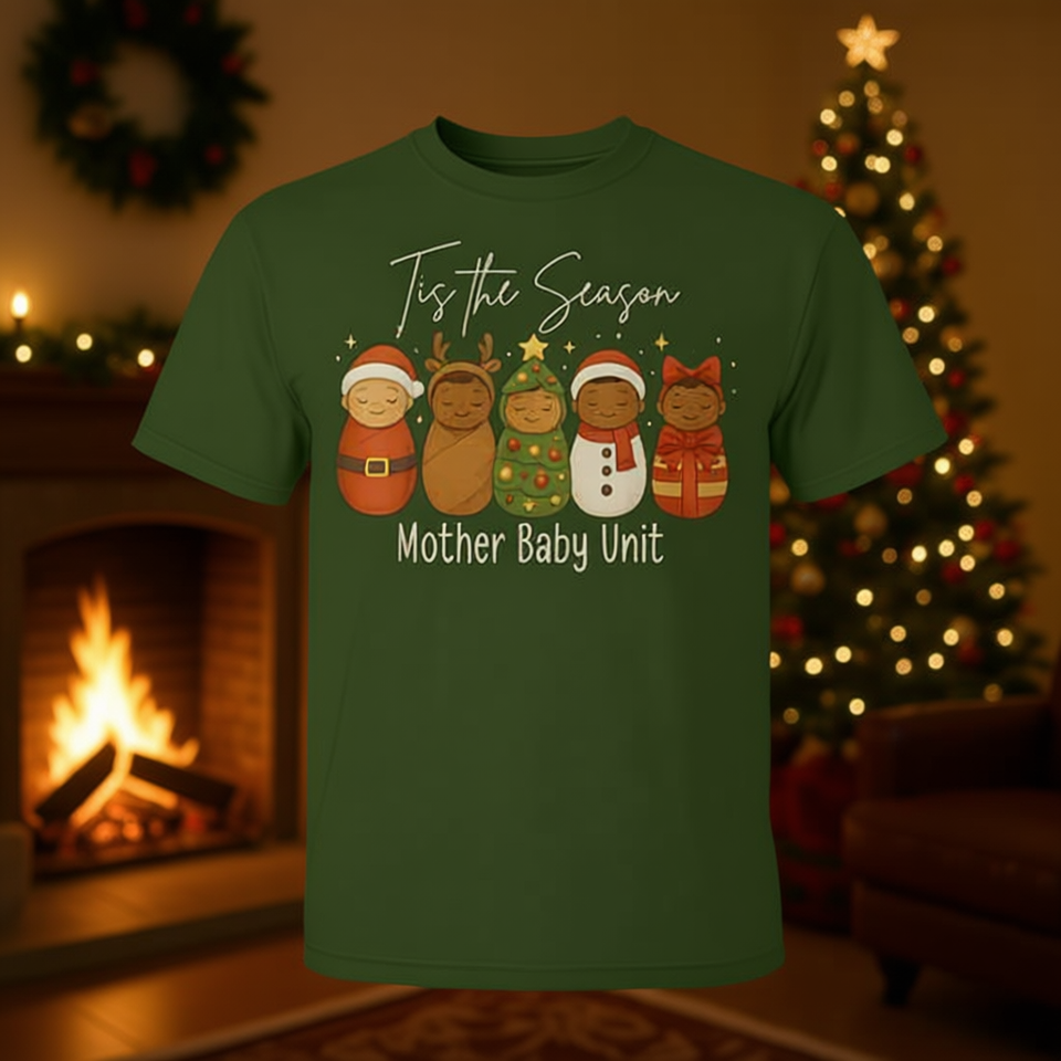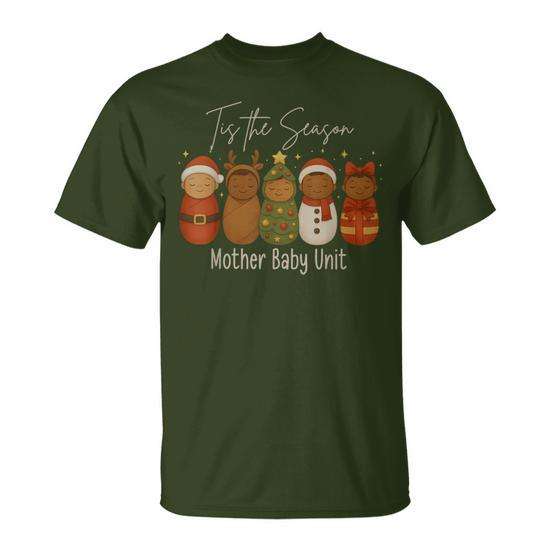 T-shirt natalizia per la famiglia, con stampa "Tis The Season Mother Baby Unit"