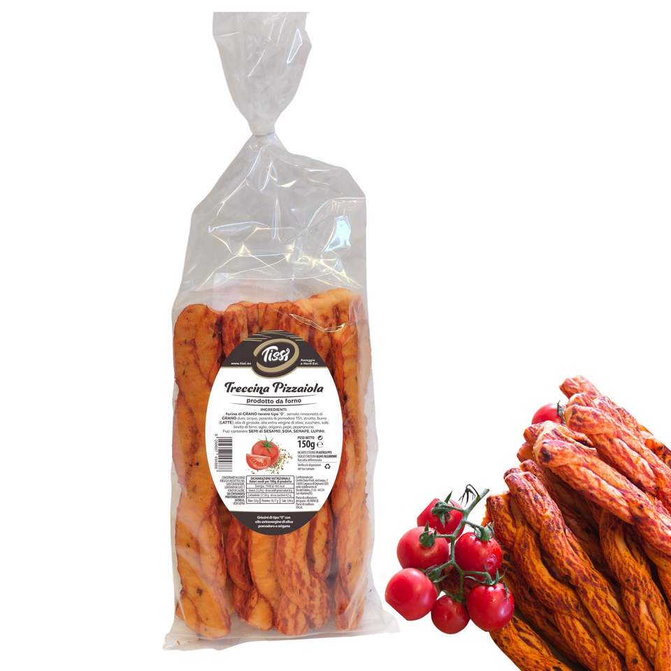 Snack di Grano Tissi, Treccine di Pizza Semi-Morbide 150g X 10pz, Gusto Salato Cotto al Forno