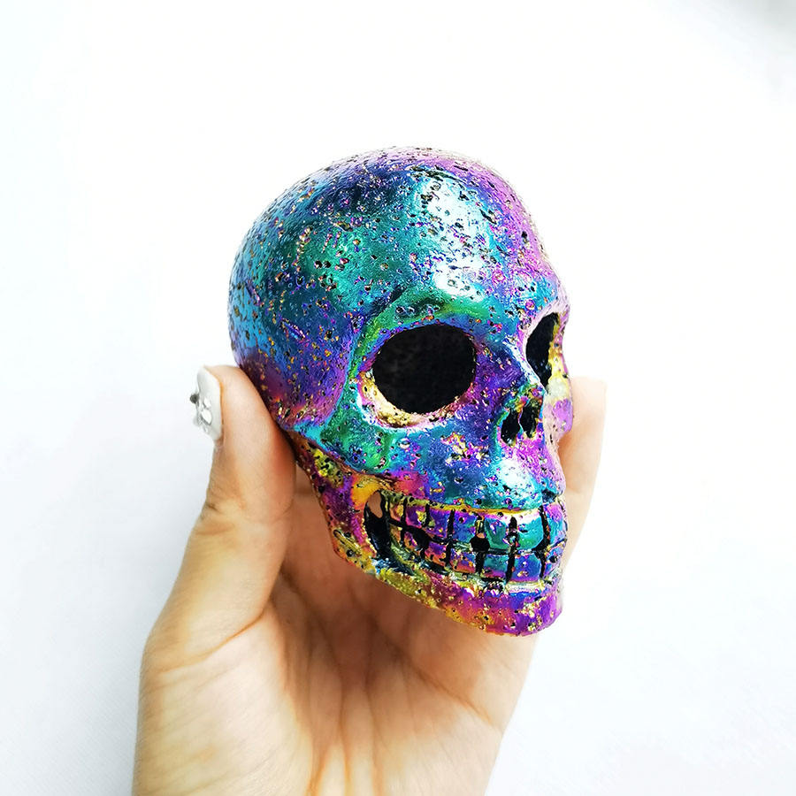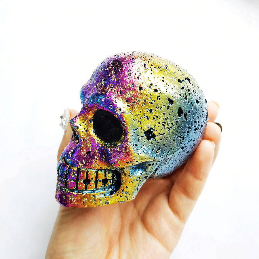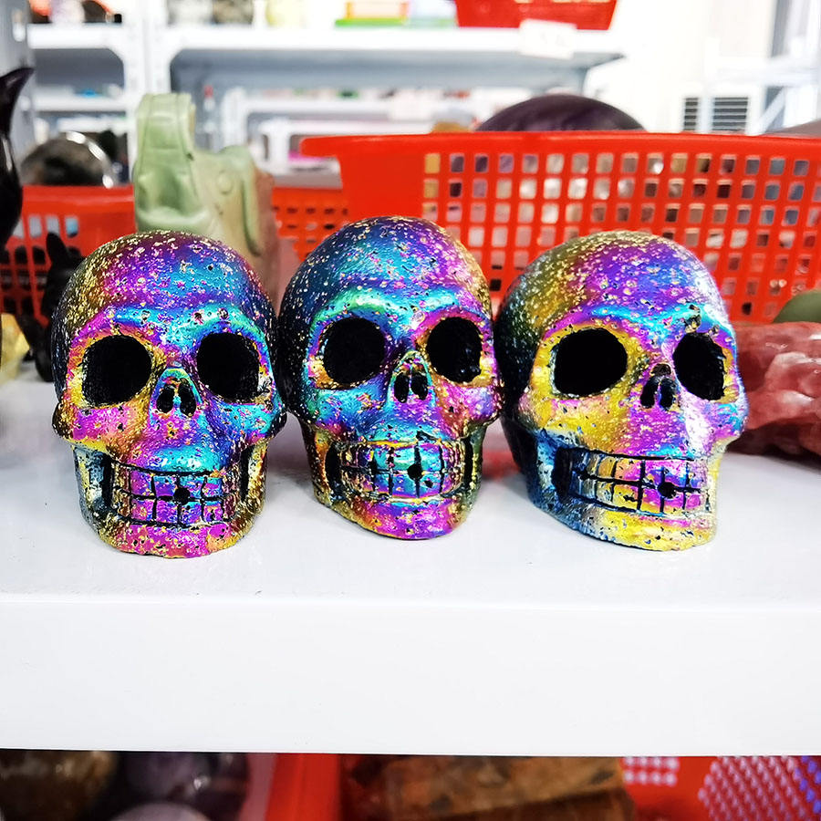 Product Name:Titanium Aura Lava Skulls Gem Stone Carved Hollow Skulls