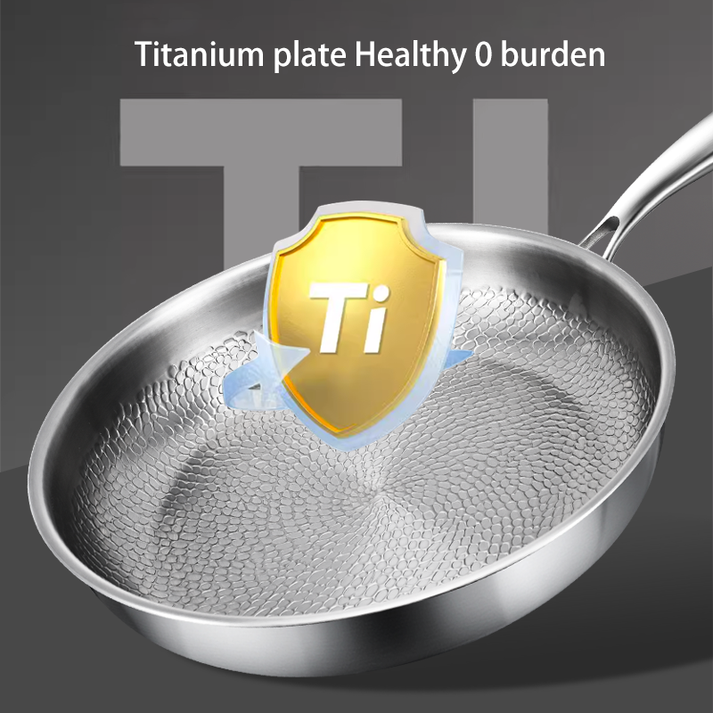 Padella in Titanio per Uso Domestico Senza Rivestimento Antiaderente Speciale per Fornello a Induzione e Gas per Uova Omelette e Bistecche