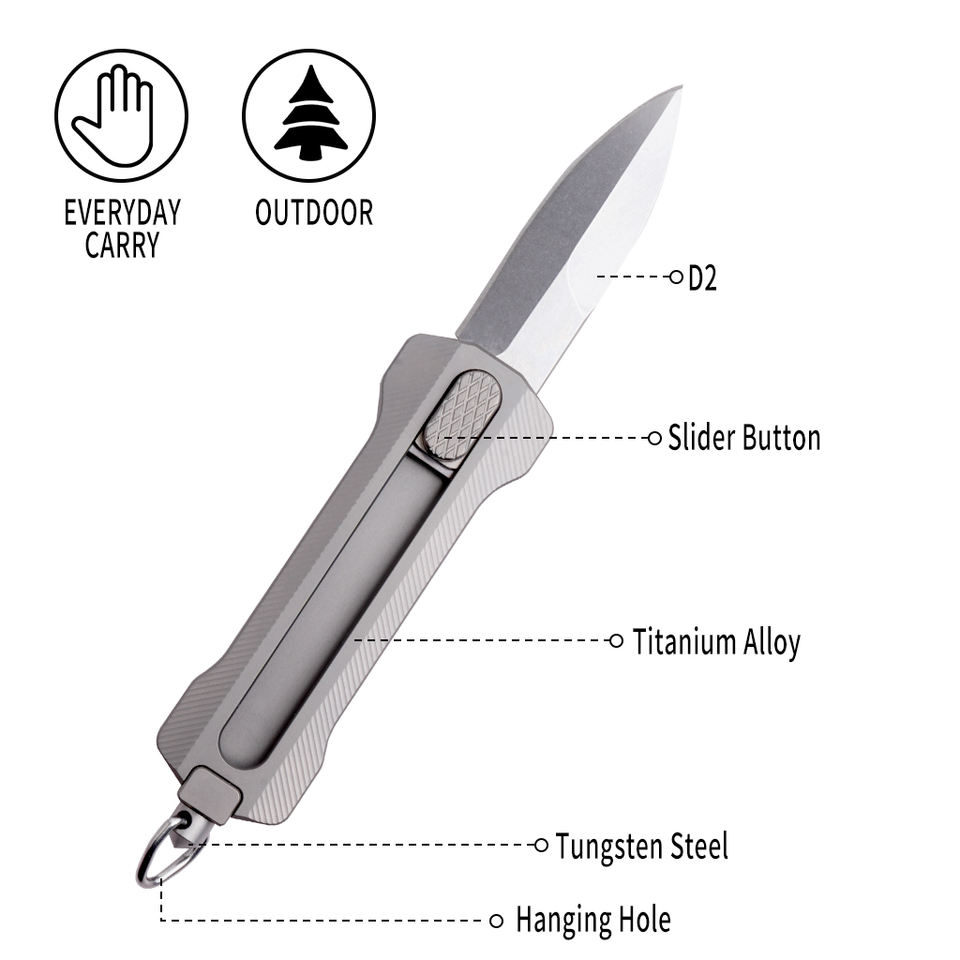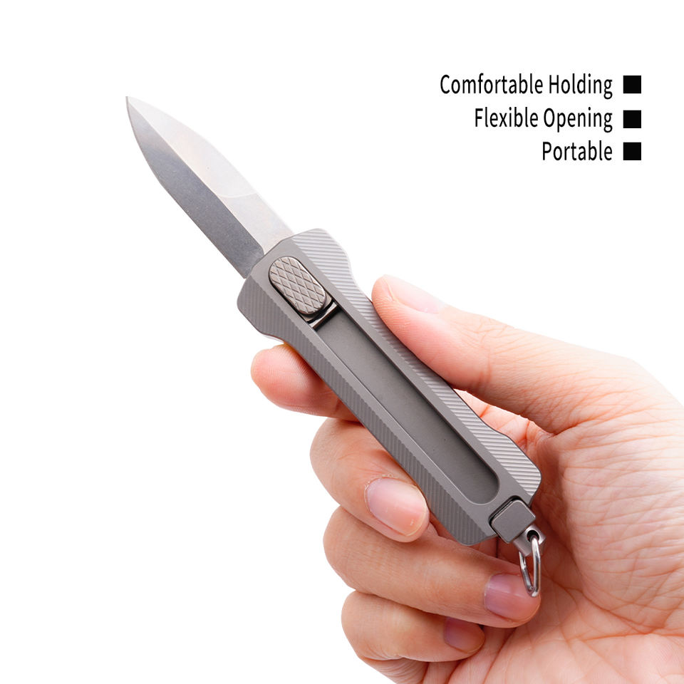 Coltello Tascabile Retrattile in Titanio con Lama da Caccia in Acciaio Inossidabile e Blocco di Sicurezza