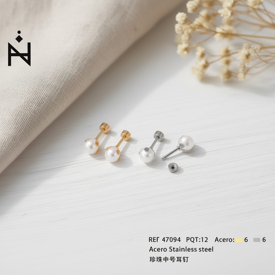 Tk Pearl Medium Stud Earrings 6mm Stainless Steel Gold Plated Faux Pearl Minimalist Unisex Everyday Wear