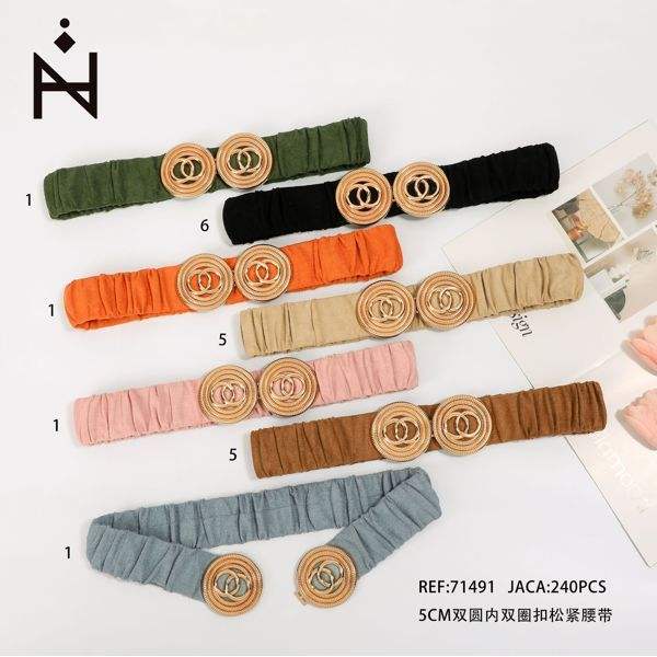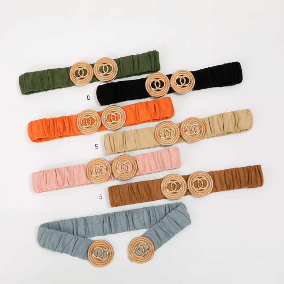 Cintura elastica con fibbia rotonda in legno per donna, cintura alla moda da 5 cm