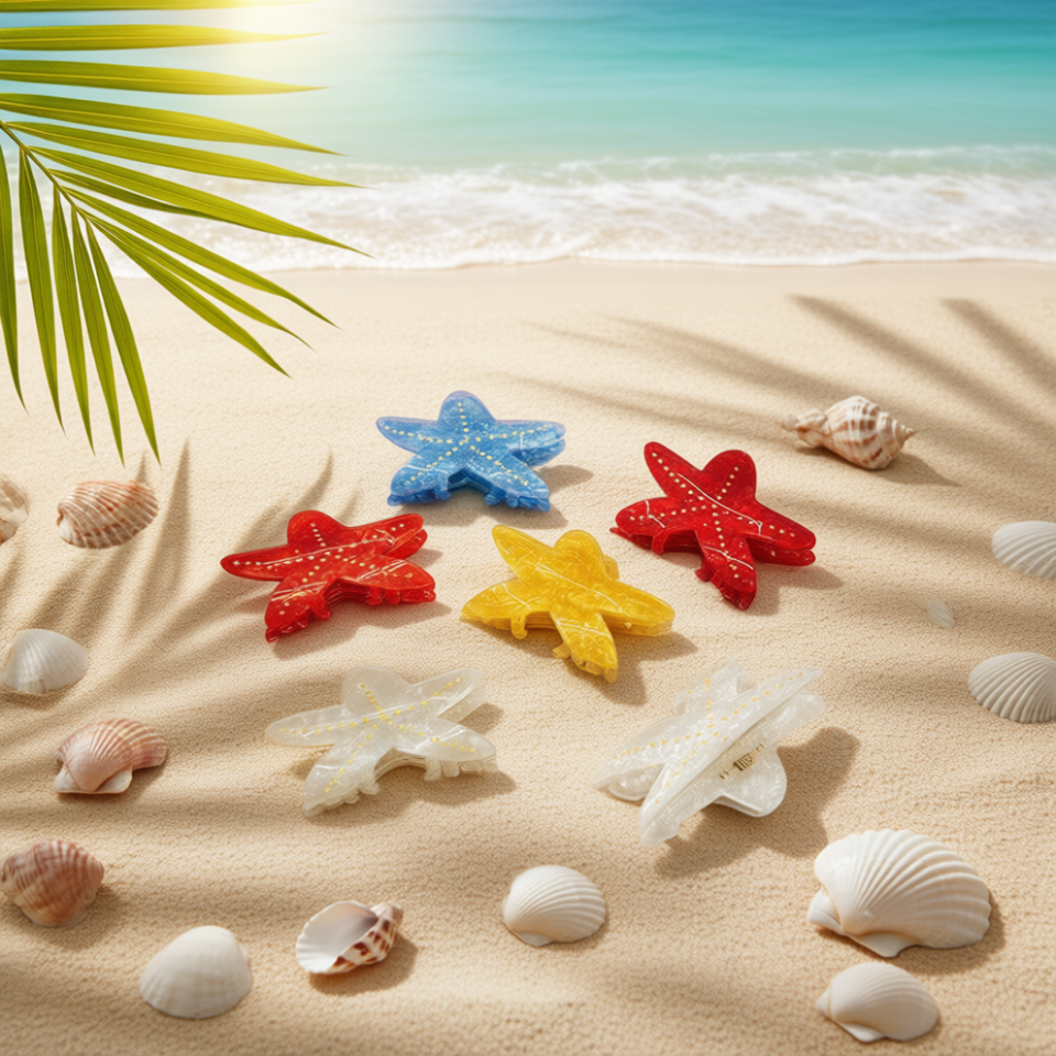 Tn Starfish Hair Clips 7Cm Colorful Plastic Fashion Casual For Women And Girls