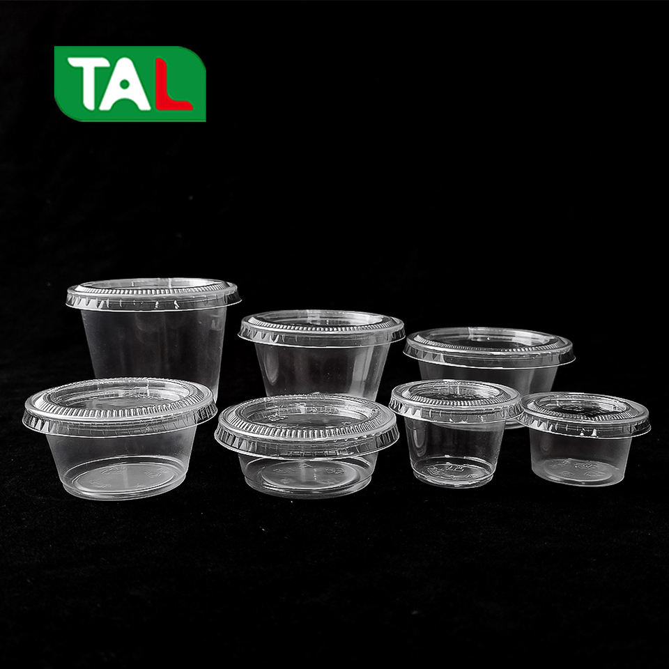 Per andare 0.5 0.75 1 1.5 2 3.25 4 5.5 oz tazza di salsa prodotti per la casa in plastica PP porzioni tazze con coperchi per la cucina del ristorante