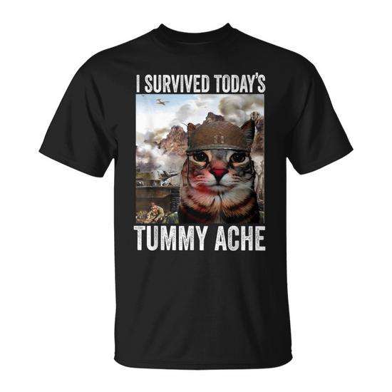 T-shirt Promozionale per Gatti Toleranti alla Lattosio: Oggi il mal di pancia è passato con il nostro gatto!