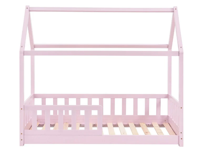 Letto per Bambini a Forma di Casa, Struttura in Legno di Pino Massiccio con Sponde di Sicurezza per Bambini e Bambine, Bianco