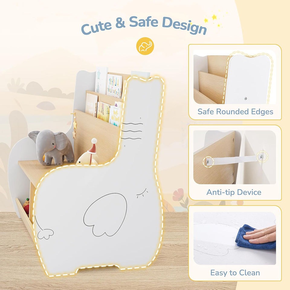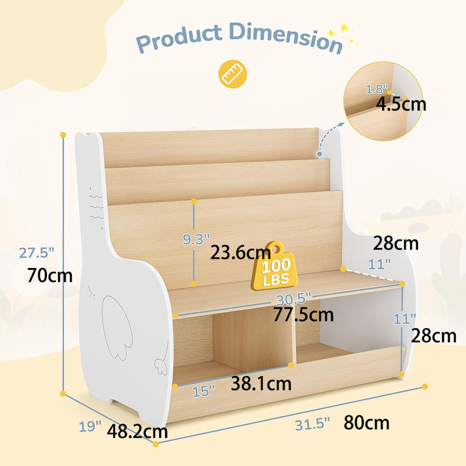 Libreria per Bambini 3 in 1, Scaffale in Legno con Panca per Cameretta e Sala Giochi