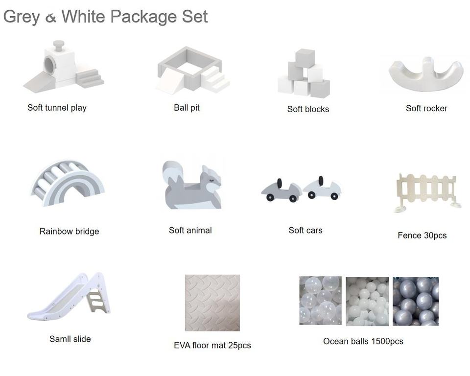 Parco giochi per bambini soft play set attrezzatura bianca e grigia parco giochi all'aperto pacchetto soft play per bambini