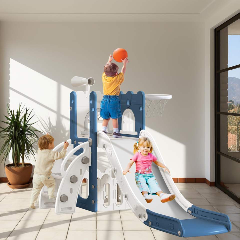 Toddler Slide for Kids Age 1-3,Kids Plastic Slide Toy with Basketball Hoop Indoor and Outdoor Baby Climber Play Set Playground
