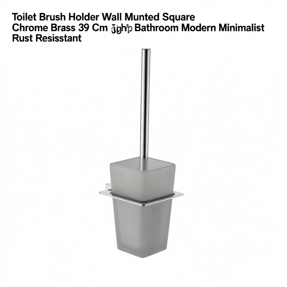 Portascopino da bagno a parete quadrato in ottone cromato, altezza 39 cm, moderno e minimalista, resistente alla ruggine