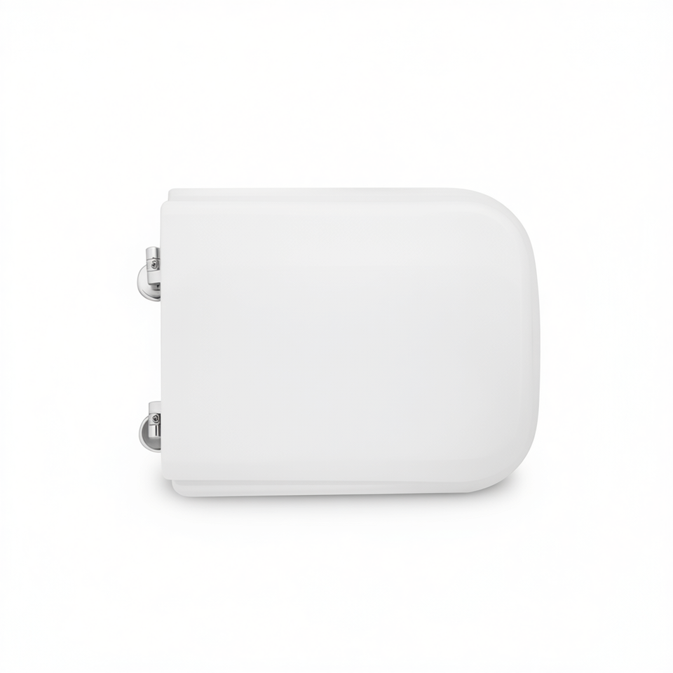 Sedile WC Rotondo in Plastica Bianca con Chiusura Frontale, Lunghezza 50,5 cm, Cerniere a Sospensione per Bagno