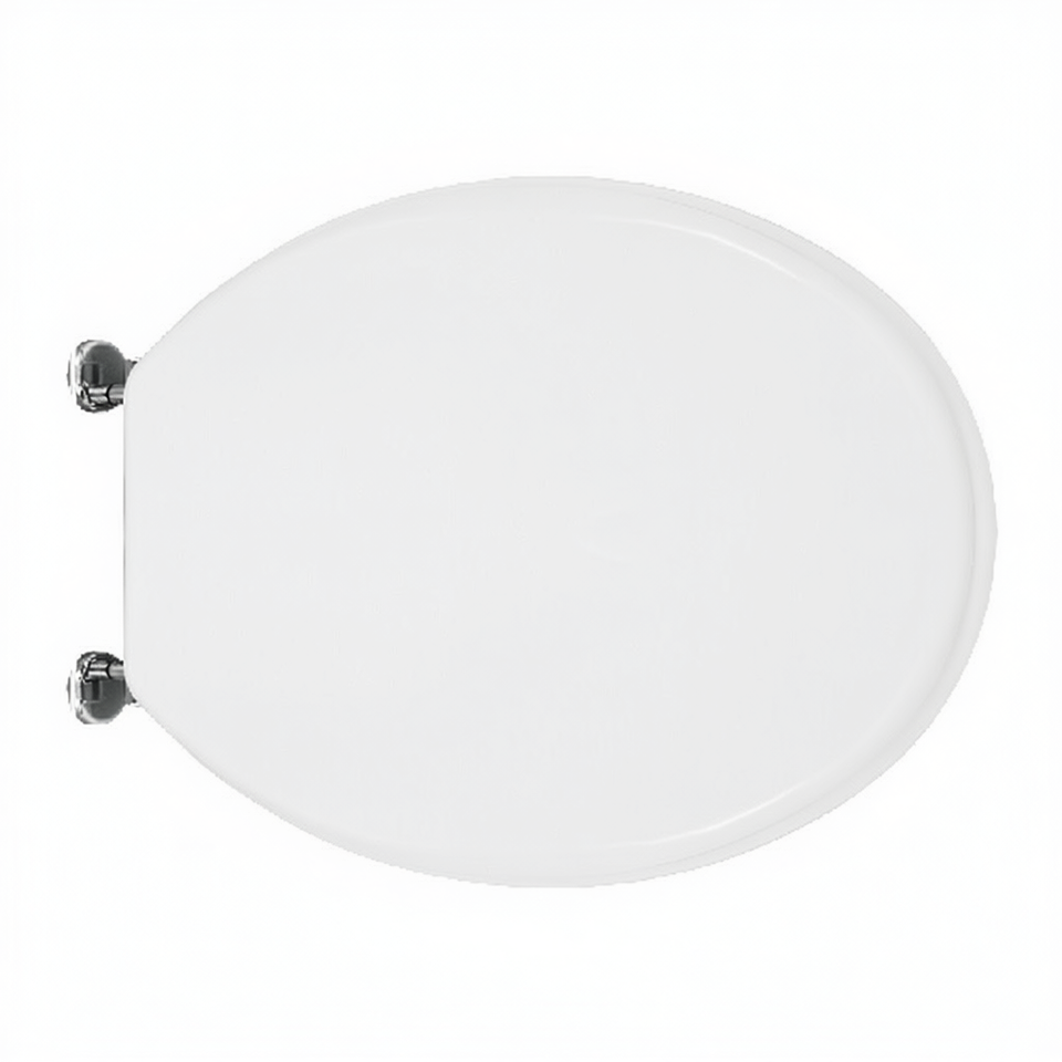 Sedile WC Rotondo in Plastica Bianca, Design Minimalista per Bagno, con Cerniere a Scomparsa