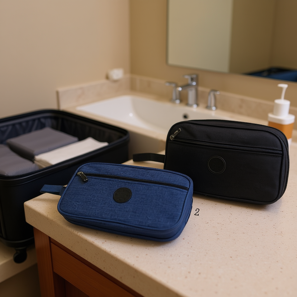 Borsa da toilette 25x14x7,5 cm, pochette da viaggio per cosmetici da uomo con cerniera e maniglia