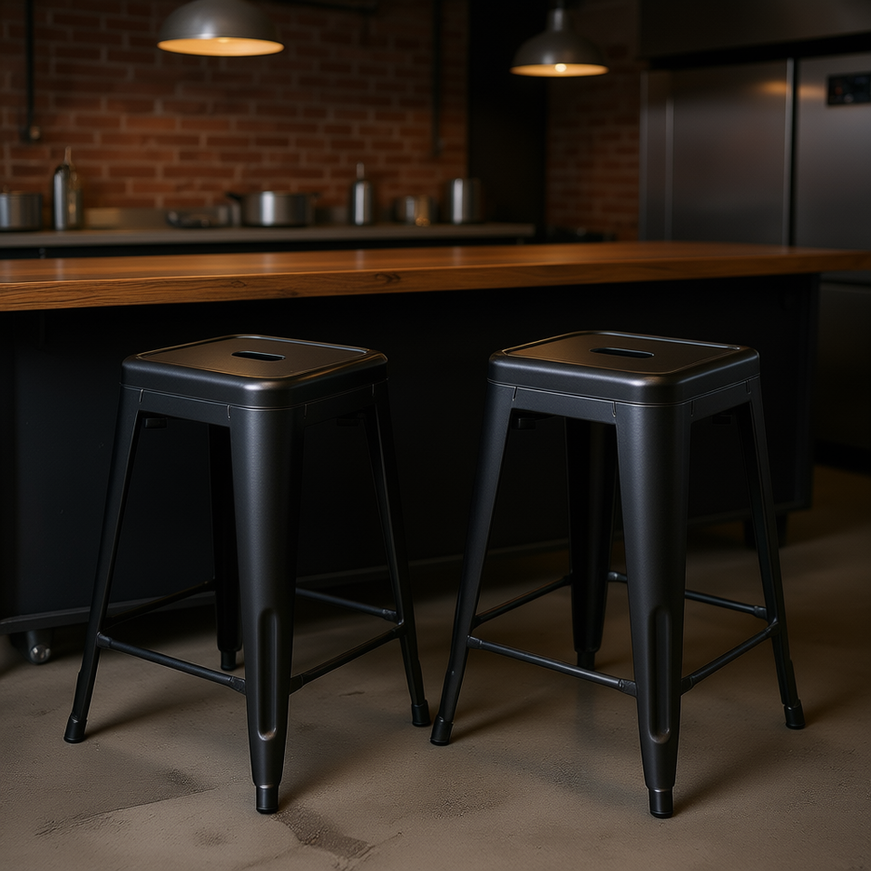 Sgabelli da Bar Stile Tolix 24 Pollici in Metallo Nero Industriale Impilabili Altezza Bancone Arredamento Bar per Casa