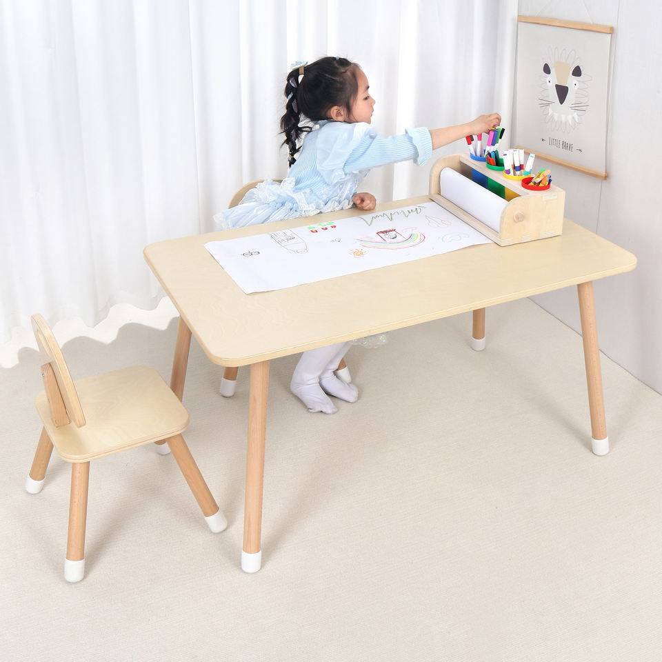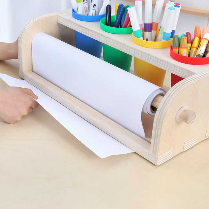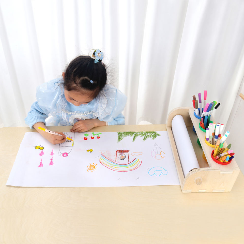 Dispenser per Rotoli di Carta da Disegno in Legno per Bambini Toluo con Funzione di Archiviazione per Disegni dei Bambini