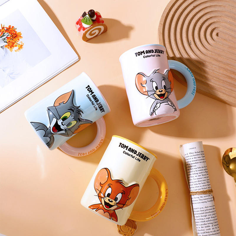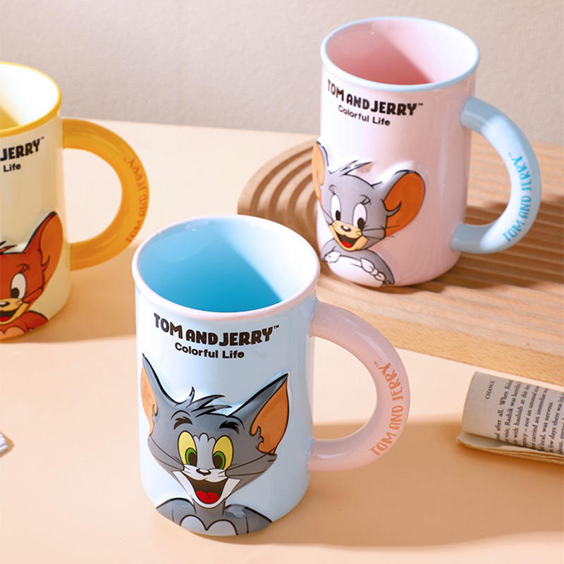 Tazza in Ceramica con Design in Rilievo di Tom e Jerry, per Ufficio e Casa, Tazza da Caffè dall'Estetica Elevata