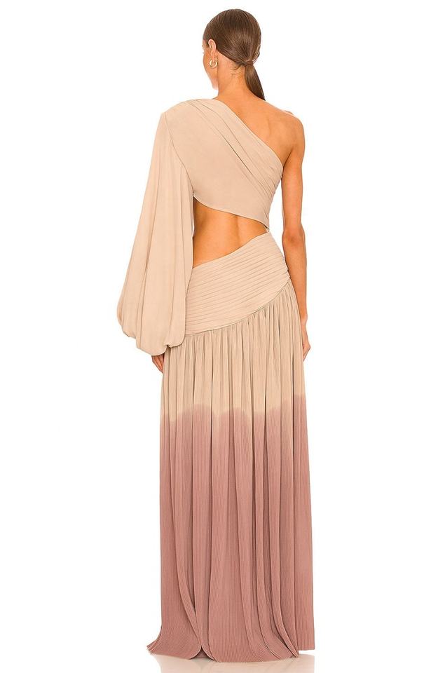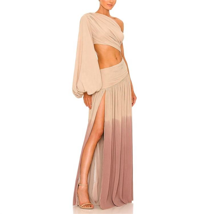 Tongrui High Quality Custom Women One-Shoulder Long Sleeve Slit Maxi Dresses Pleated Dress Sexy Dew Leg Casual Dress